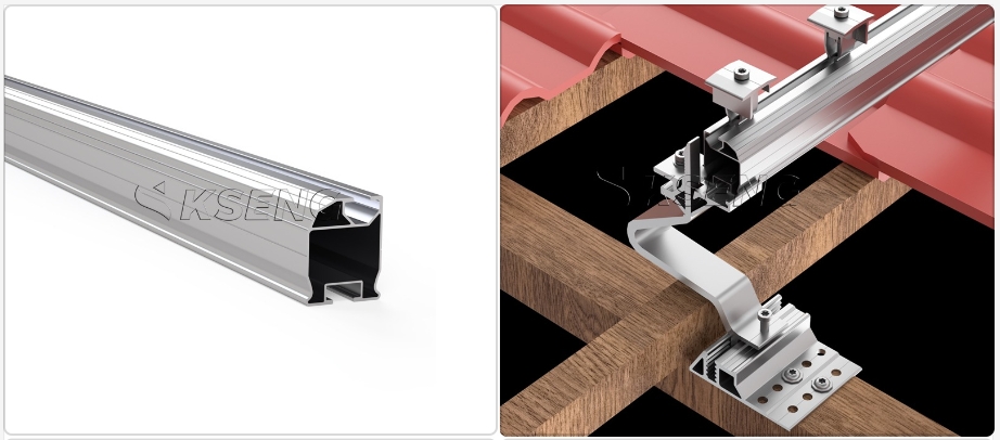 Aluminum solar mounting rail is made of high strength extrusion aluminum alloy. Solar panel mounting rails are the essential hardware that attaches solar panels to roofs systems, ensuring stability and maximizing sunlight exposure for optimal energy generation. Kseng is professional manufacturer and supplier of solar mounting bracket accessories,aluminum mounting bracket,solar mounting rails.