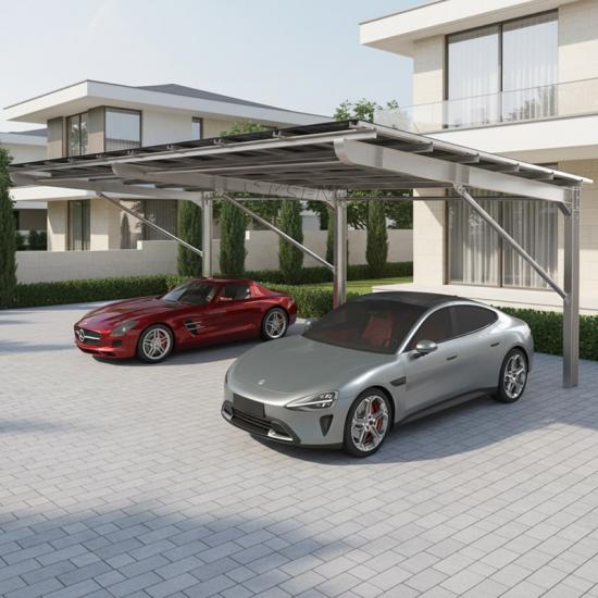 The Carbon Steel Solar Carport is a robust and versatile structure designed to provide shaded parking while harnessing solar energy. This carport system is constructed from high-strength carbon steel, which offers exceptional durability and longevity, making it suitable for long-term outdoor use in various climates. The carport's sturdy framework supports solar panels that generate clean, renewable energy, reducing reliance on traditional power sources and lowering energy costs. With proper maintenance, a carbon steel solar carport can last for decades, providing both functional and aesthetic benefits to residential and commercial properties.